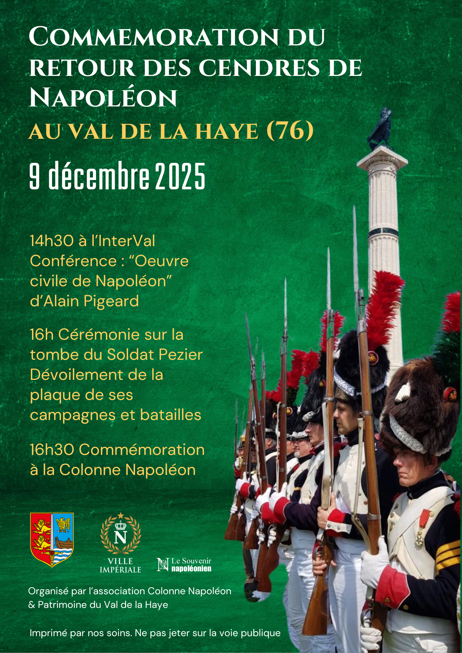Dévoilement de la plaque de ses campagnes et batailles - 16h30 Commémoration à la Colonne Napoléon